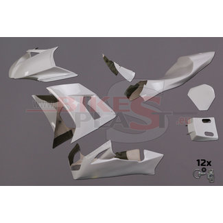 Hoge kwaliteit GFK Bikesplast Racekuipen welke te monteren zijn op de originele bevestigingspunten. Dit kuipwerk heeft een excellente pasvorm en is versterkt met kevlar bij de bevestigingspunten. Worden verkocht als set zoals getoond op de foto incl. snelsluiters, hittewerende folie en een rubberen dop in de onderkuip maar alle delen zijn ook los verkrijgbaar. Tevens leverbaar zijn tankcovers, voorspatborden, carbondelen, instrumentholders en neopreen foams op maat gemaakt.